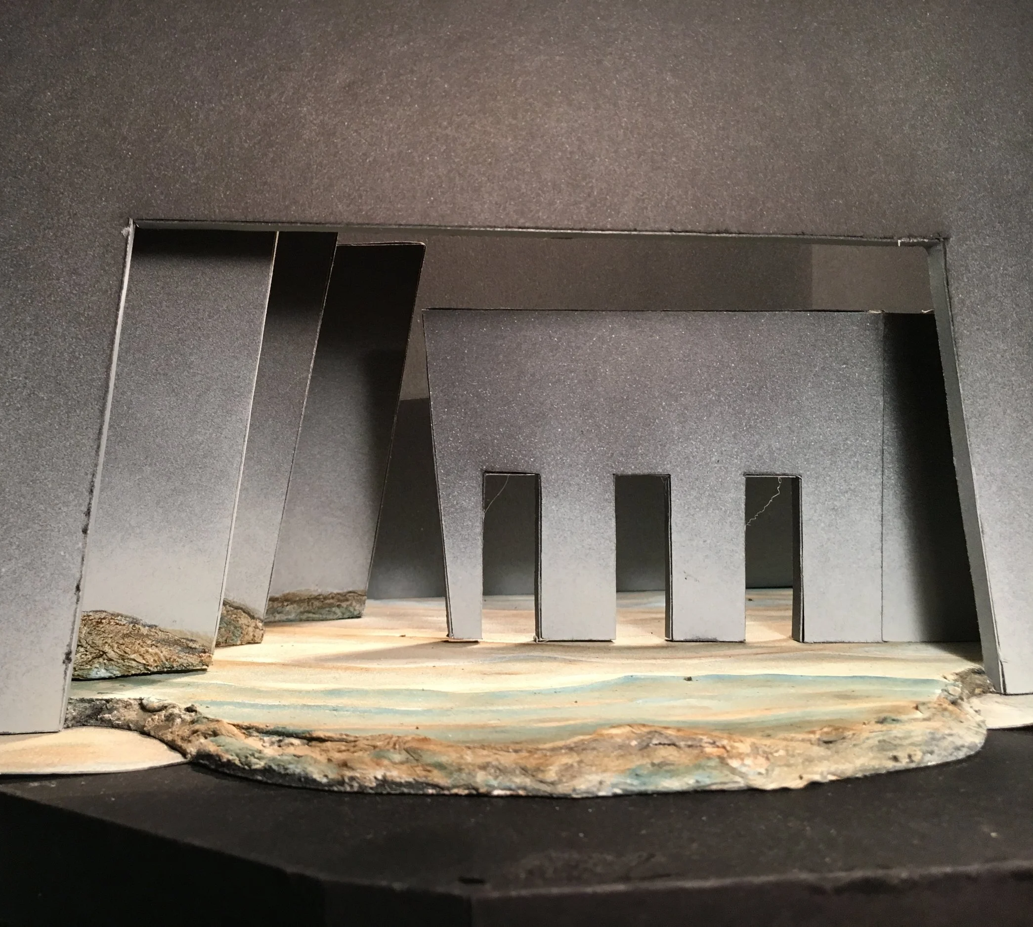 Horizons of Gold is a new musical with a sweeping score. A heartbreaking and timely tale about two women pulled together by fate in the wake of The Great Depression while dust storms ravage the west. The model was the first attempt to employ projections on a small scale to help enhance the set and change the scenes.