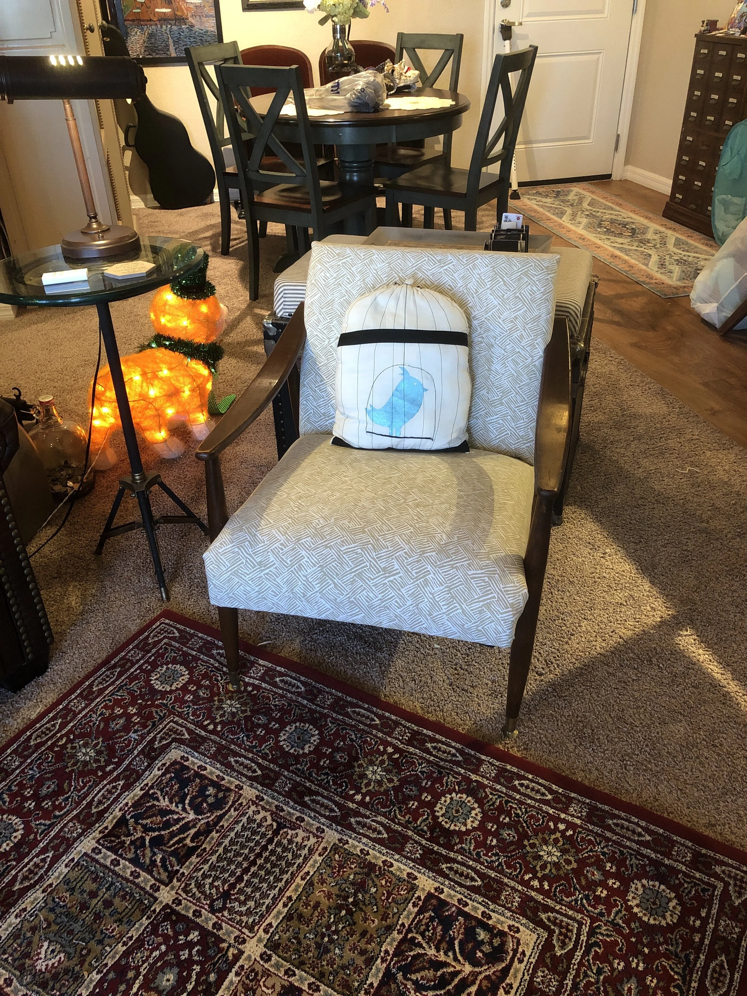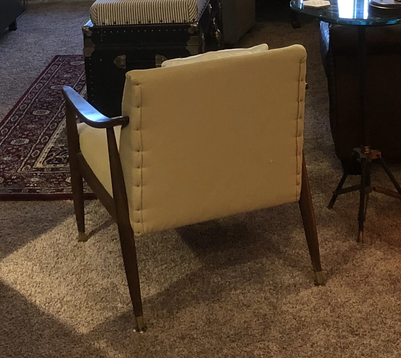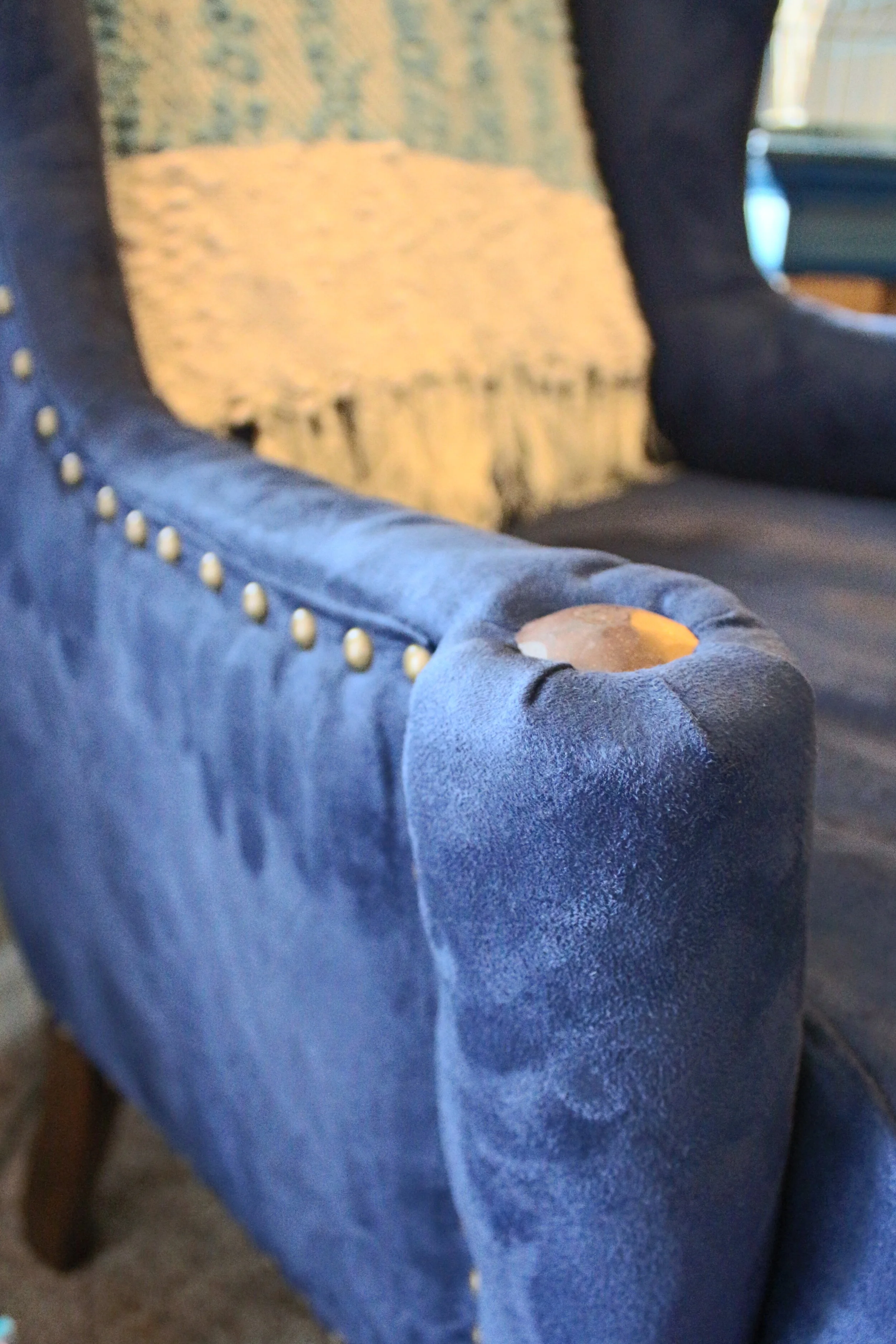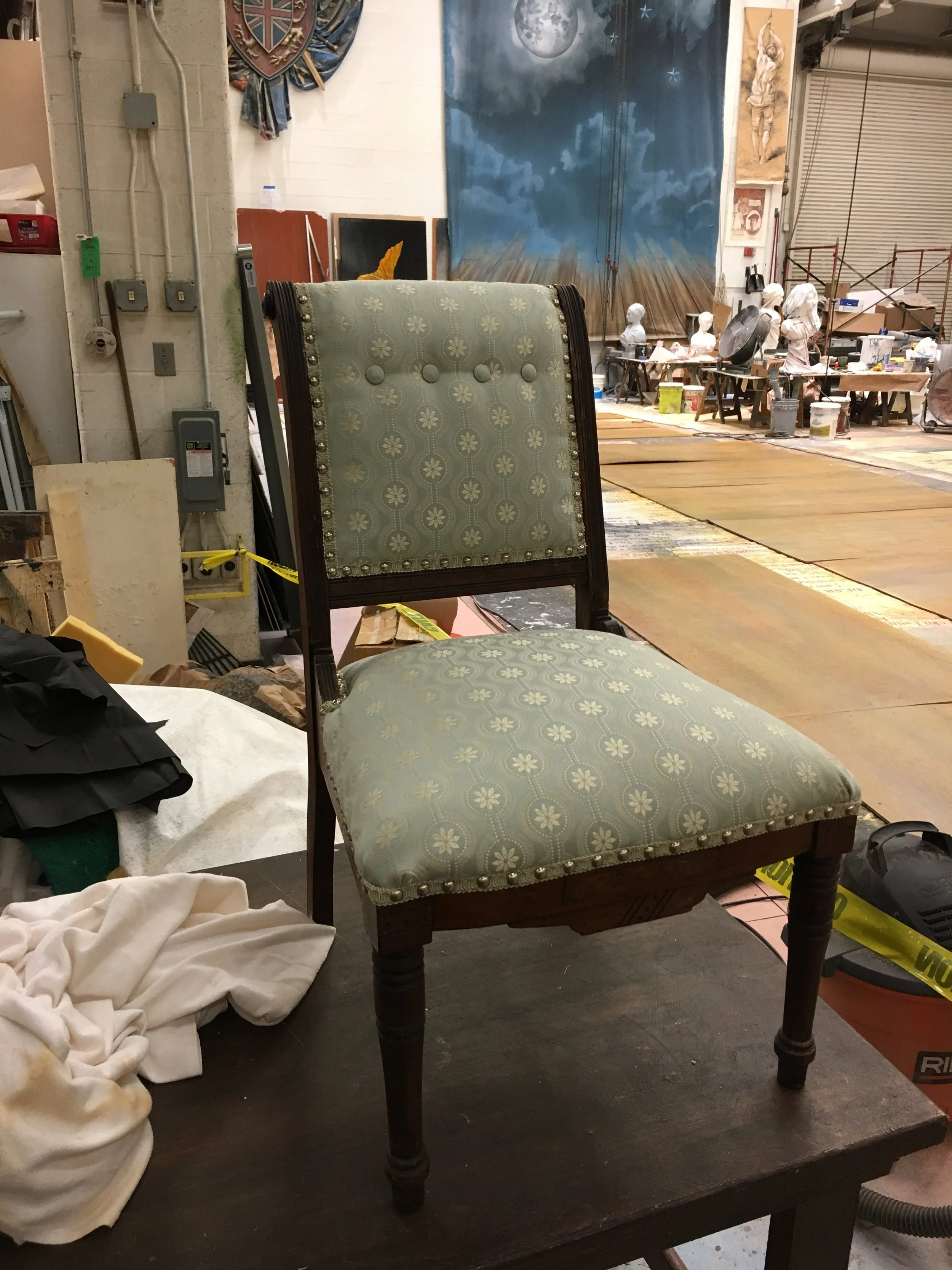 Over 60 hours of work were put into reviving the chair into a semblance of its former glory. During the process, it was found that tufted buttons were common on this style of chair.
